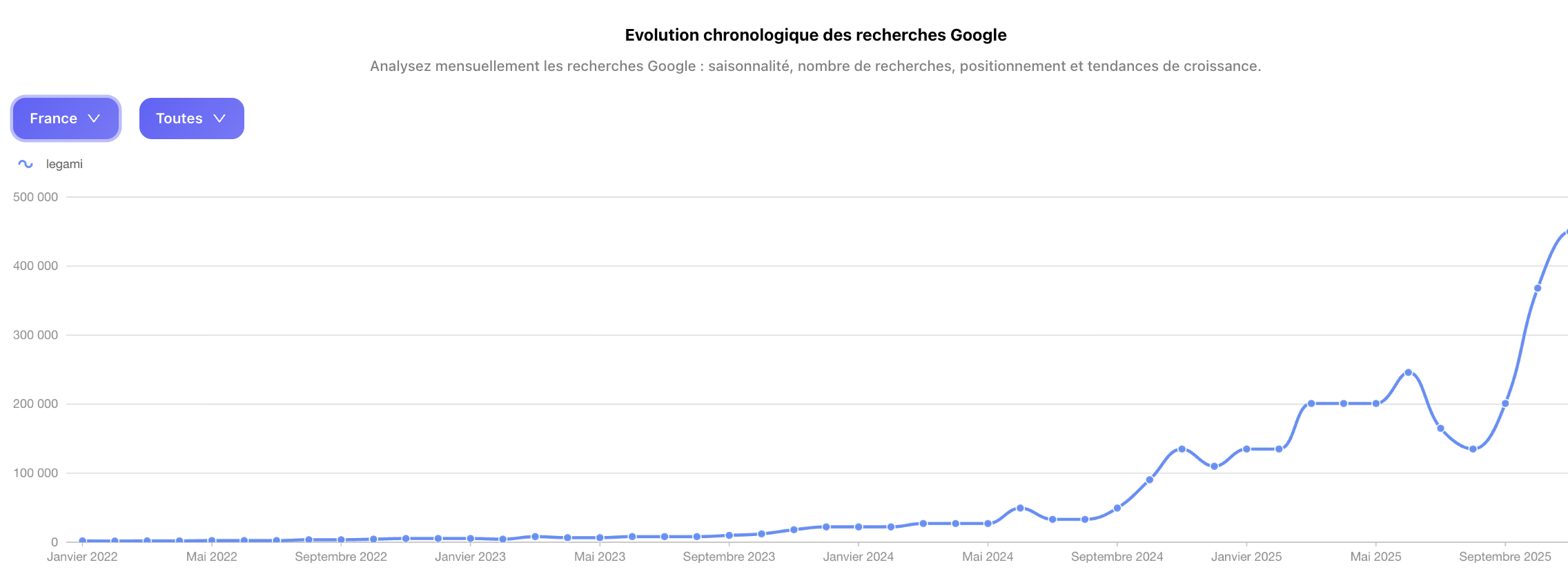 Les chiffres parlent d'eux-mêmes : les recherches sur internet ont explosé, passant d’une moyenne de 30 000 par mois en 2024 à plus de 450 000 en novembre 2025 !
